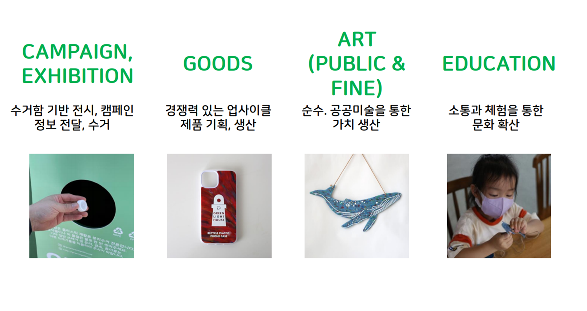 - 업사이클 분야 및 제품폐플라스틱 활용 작품 제작 및 교육